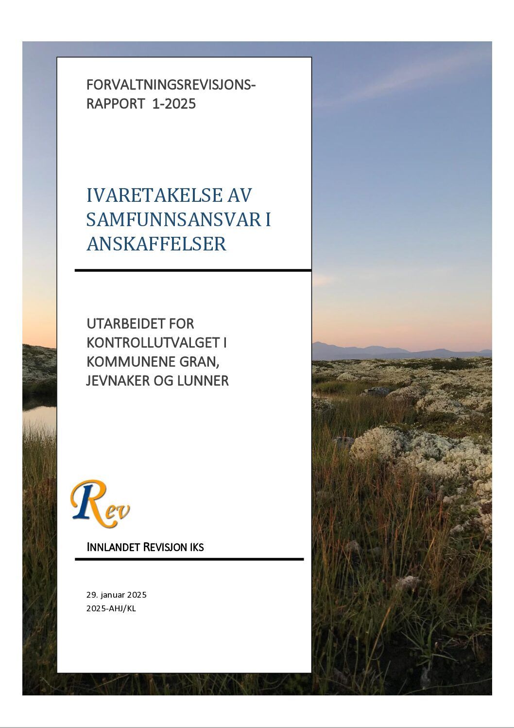 Ivaretakelse av samfunnsansvar i anskaffelser av Krible | mar 4, 2026 Download File Type: pdf File Size: 2 MB Categories: Annet (herunder anskaffelser, varsling mm) Tags: 2025 Author: Gran, Jevnaker, Lunner